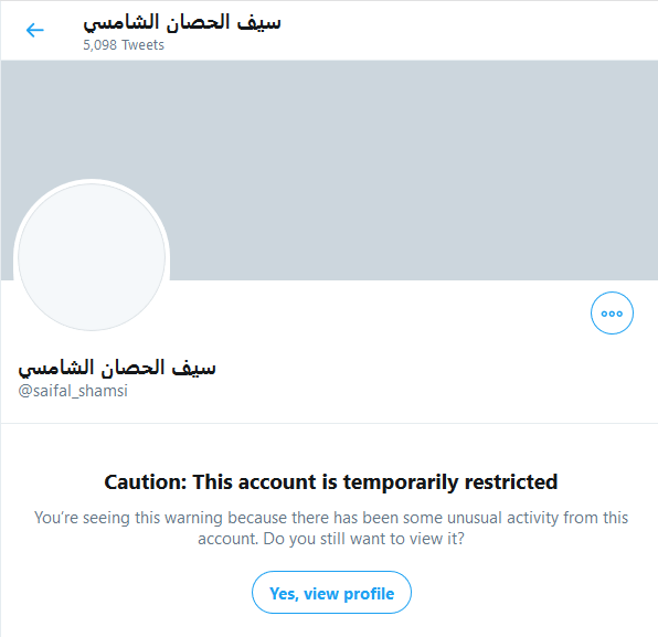 في أواخر سبتمبر الماضي (2020) فجأة وبدون سابق انذار أو اشعار؛ تم تقييد حسابي على شبكة التواصل الاجتماعي واسعة الانتشار (تويتر) هكذا وبدون ابداء أية أسباب. ولقد تواصلت مع دعم تويتر في ذلك الوقت، ورفعت عشرات الاعتراضات على ذلك، وطلبت توضيح اسباب التقييد. ولكن لم يردني أي رد على الاطلاق. وللذين لا يعرفون ما هو المقصود بتقييد الحساب، يعني ذلك أن الحساب يمكن مشاهدة محتواه وأية تغريدات سابقة، ولكن صاحب الحساب لا يمكن له نشر أية تغريدات جديدة، ولا يمكن له التعليق على أية تغريدات أياً كان صاحبها، وليس له حتى ابداء الاعجاب بأي تغريدة من التغريدات، فقط يبقى الحساب جامداً، والأسوء من ذلك كله، رسالة التحذير التي يراها كل شخص حين يدخل على صفحة حسابي على تويتر ويجد تلك الرسالة بأن الحساب تم تقييده بسبب أنشطة مشبوهة!!